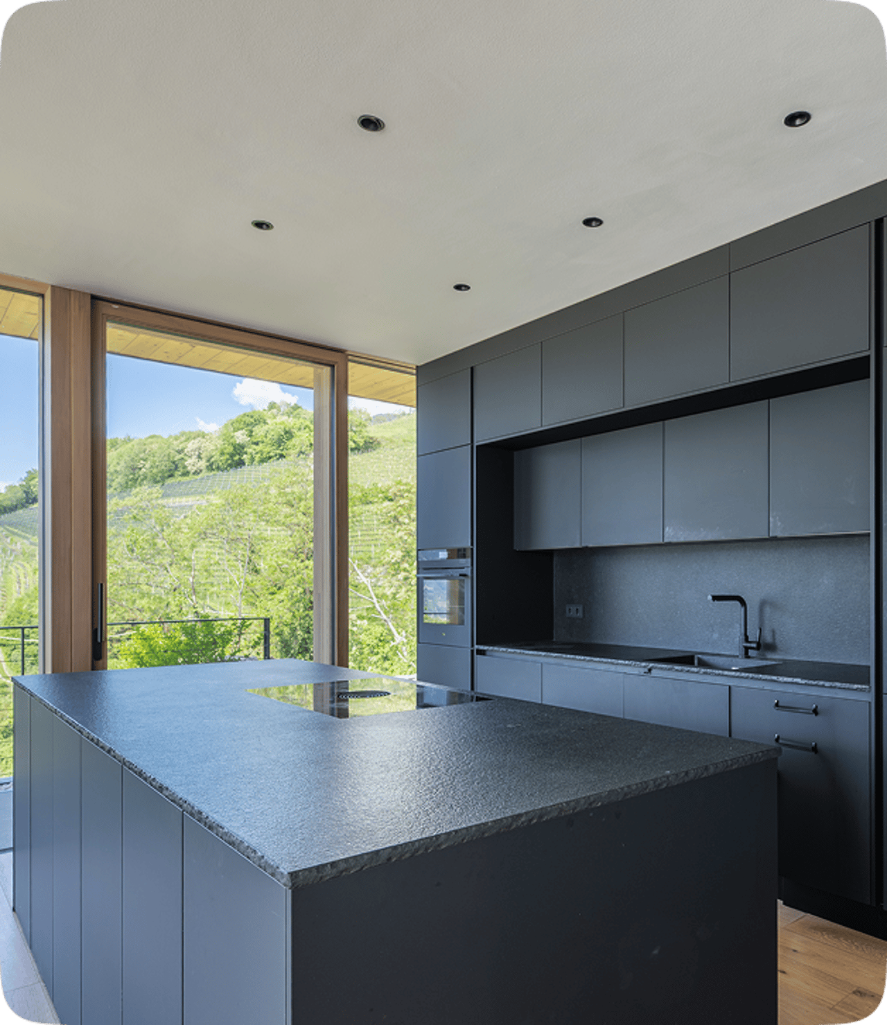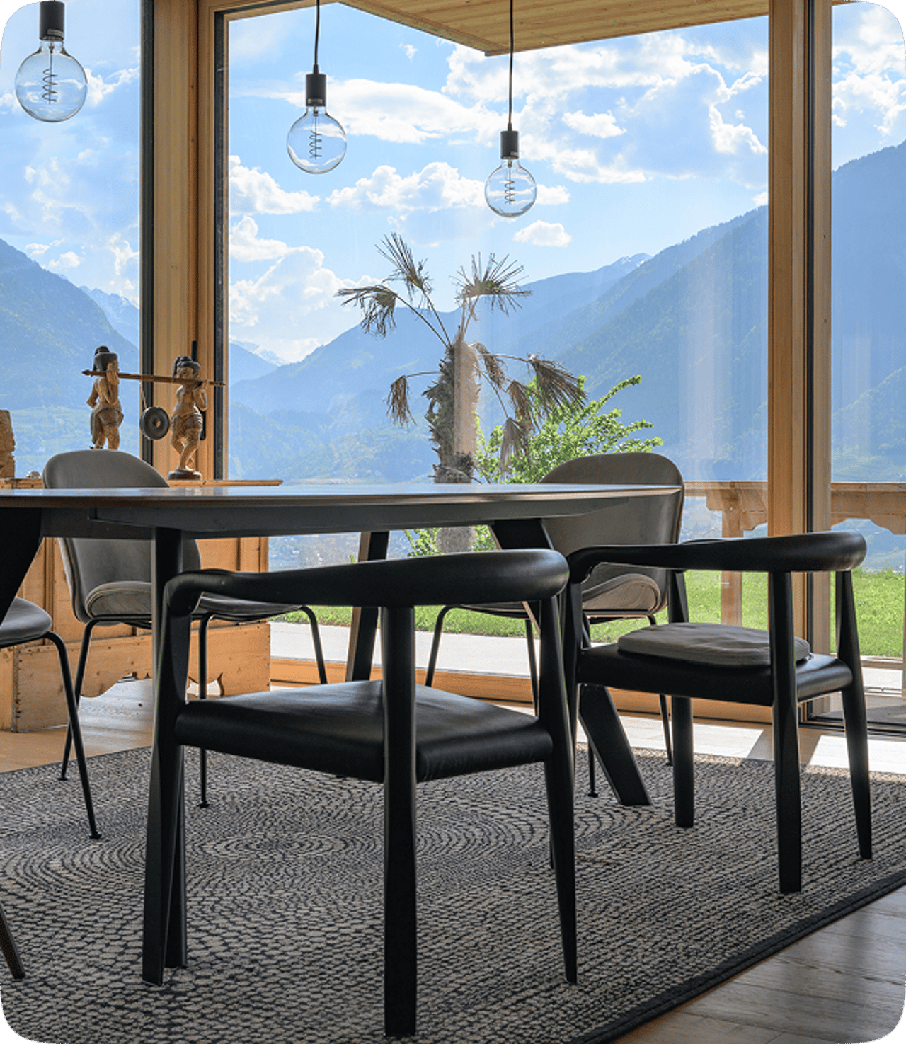 Erleben Sie das ganze Jahr über unvergessliche Momente: sei es der Blick vom Esstisch aus oder gemütliche Abende am knisternden Holzofen, während unter Ihnen das Lichtermeer des Etschtals glitzert.