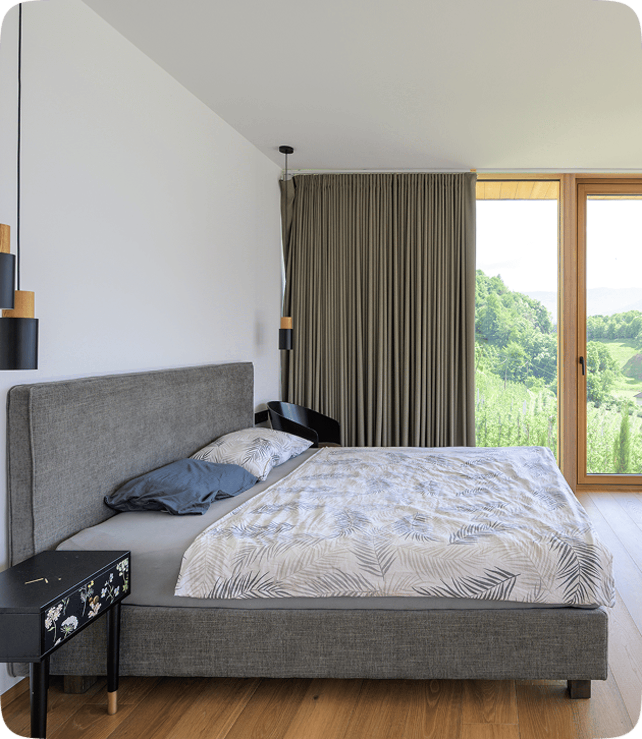 Diese Villa ist sogar in zwei autonome Wohneinheiten aufgeteilt. Perfekt für generationenübergreifendes Wohnen oder eine diskrete, exklusive Vermietung. Trotz der Ruhe in der Natur ist das pulsierende Zentrum Merans nur einen Katzensprung entfernt.